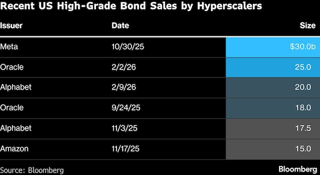ಆಲ್ಫಾಬೆಟ್ ಹೇಳಿದ ಒಂದು ವಾರದ ನಂತರ ಬಾಂಡ್ ಮಾರಾಟಗಳು ಬರುತ್ತವೆ ಬಂಡವಾಳ ವೆಚ್ಚವು $185 ಶತಕೋಟಿಯಷ್ಟು ಹೆಚ್ಚಾಗಬಹುದು ಈ ವರ್ಷ, ಅದರ AI ಮಹತ್ವಾಕಾಂಕ್ಷೆಗಳನ್ನು ಬೆಂಬಲಿಸಲು ಹೆಚ್ಚಾಗಿ ಕಳೆದ ವರ್ಷದ ಖರ್ಚು ದುಪ್ಪಟ್ಟು. ಇತರ ತಂತ್ರಜ್ಞಾನ ಮೇಜರ್ಗಳು ಸಹ ಸಾಲದ ಮಾರುಕಟ್ಟೆಗಳನ್ನು ಆಕ್ರಮಣಕಾರಿಯಾಗಿ ಟ್ಯಾಪ್ ಮಾಡುತ್ತಿದ್ದಾರೆ. Oracle ಇತ್ತೀಚೆಗೆ $25 ಶತಕೋಟಿ ಸಂಗ್ರಹಿಸಿದೆ, $129 ಶತಕೋಟಿ ಬೇಡಿಕೆಯನ್ನು ತನ್ನ ಸ್ವಂತ AI ಯೋಜನೆಗಳಿಗೆ ಧನಸಹಾಯ ಮಾಡಲು.