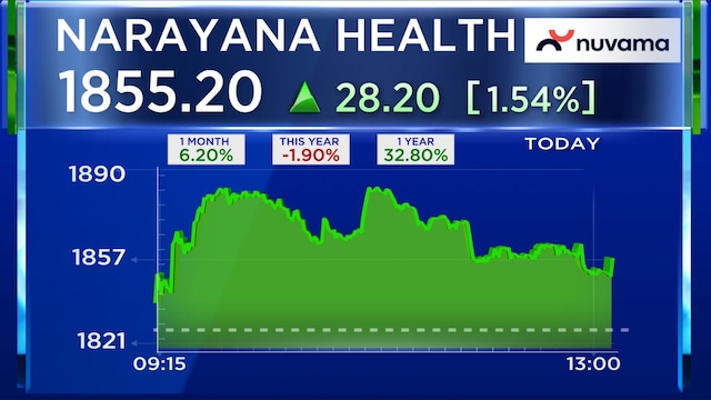 ನಾರಾಯಣ ಹೆಲ್ತ್ನ ಪ್ರಸ್ತುತ ಮಾರುಕಟ್ಟೆ ಬಂಡವಾಳ ಮೌಲ್ಯ ₹37,826.16 ಕೋಟಿ. ಸ್ಟಾಕ್ ಪ್ರಸ್ತುತ NSE ನಲ್ಲಿ ಮಧ್ಯಾಹ್ನ 1:09 ಕ್ಕೆ ₹1,849 ನಲ್ಲಿ ವಹಿವಾಟು ನಡೆಸುತ್ತಿದೆ ಮತ್ತು ಕಳೆದ ವರ್ಷಕ್ಕಿಂತ 32% ಗಳಿಸಿದೆ.